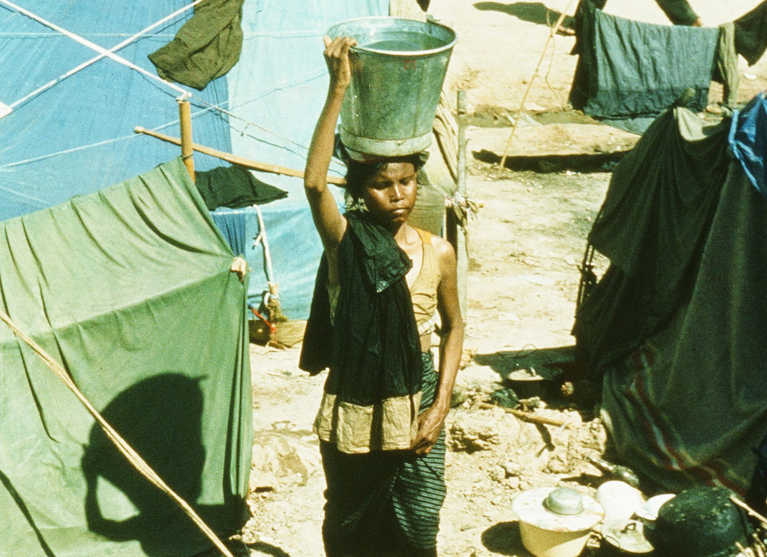 Thai/ Kampuchean border area 1979, camp for 42,000 displaced Cambodians
